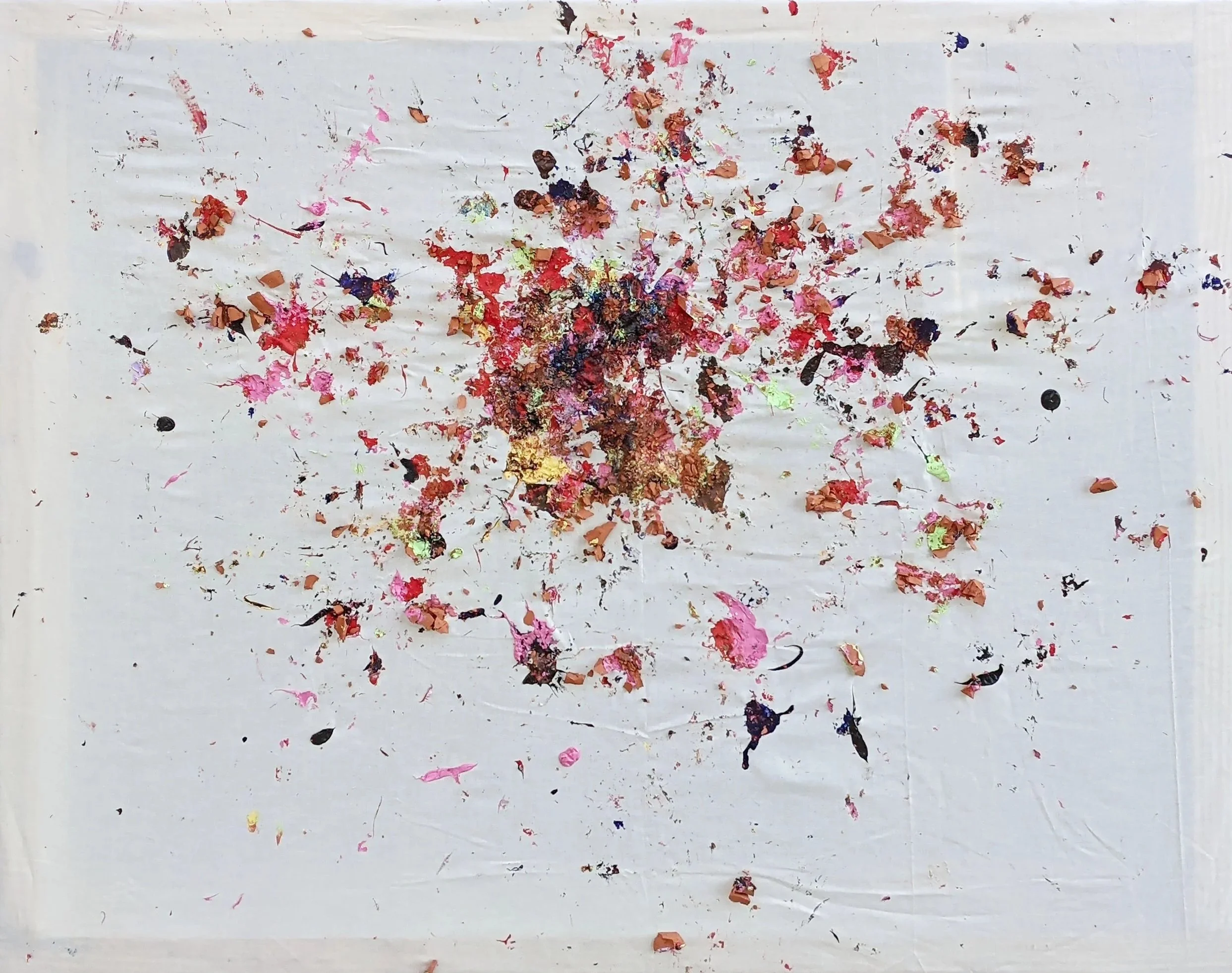 Filming in the same location at two different times of day, I perform two separate rituals. During the day, I shatter an old ceramic sculpture filled with paint onto a sheet of cotton fabric. At night, I set fire to ripped pages from old journals where I had written extensively about a previous emotionally abusive relationship.
